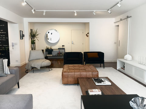 Criação de layout, especificação de mobiliários e todas as peças "soltas" como cortinas, tapetes, luminárias de piso ou de mesa, podendo envolver pintura e marcenaria. Aqui também pode ser desenvolvido o projeto em realidade virtual, conforme desejo do cliente.